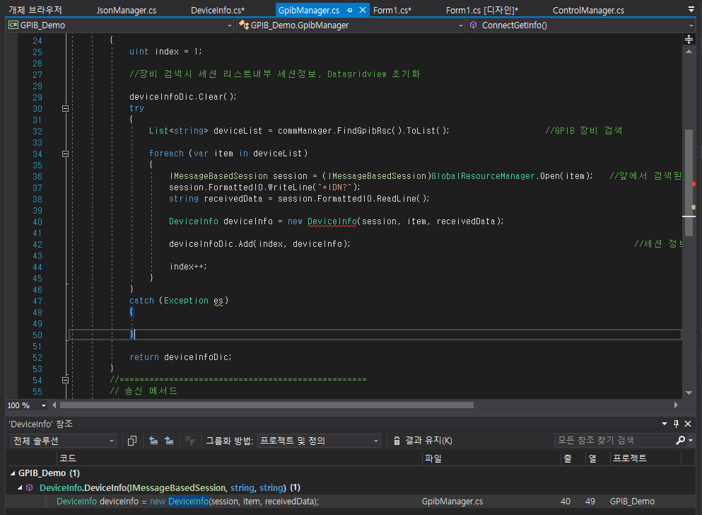 그리하여 GpibManager 클래스의 코드가 변경이 되었습니다.