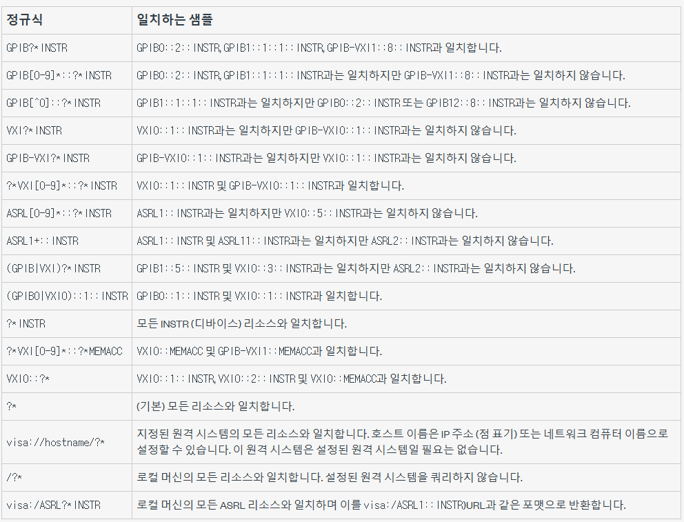 현재는 GPIB 인터페이스를 걸러낼 것이라서 [ "GPIB?*INSTR" ] 로 입력합니다.