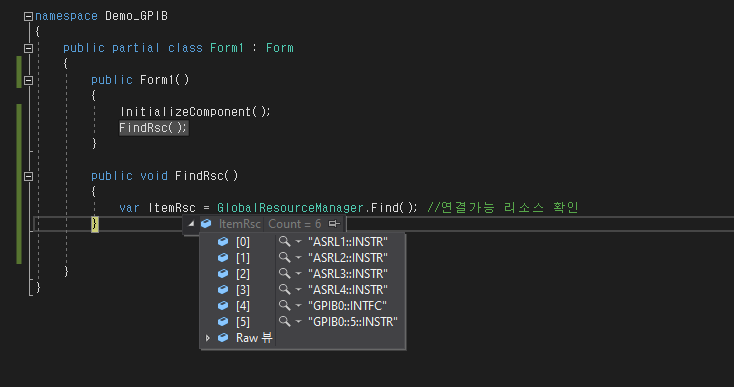 위와 같이 메서드를 변경하고 호출하면 GPIB가 하나만 검색됩니다.