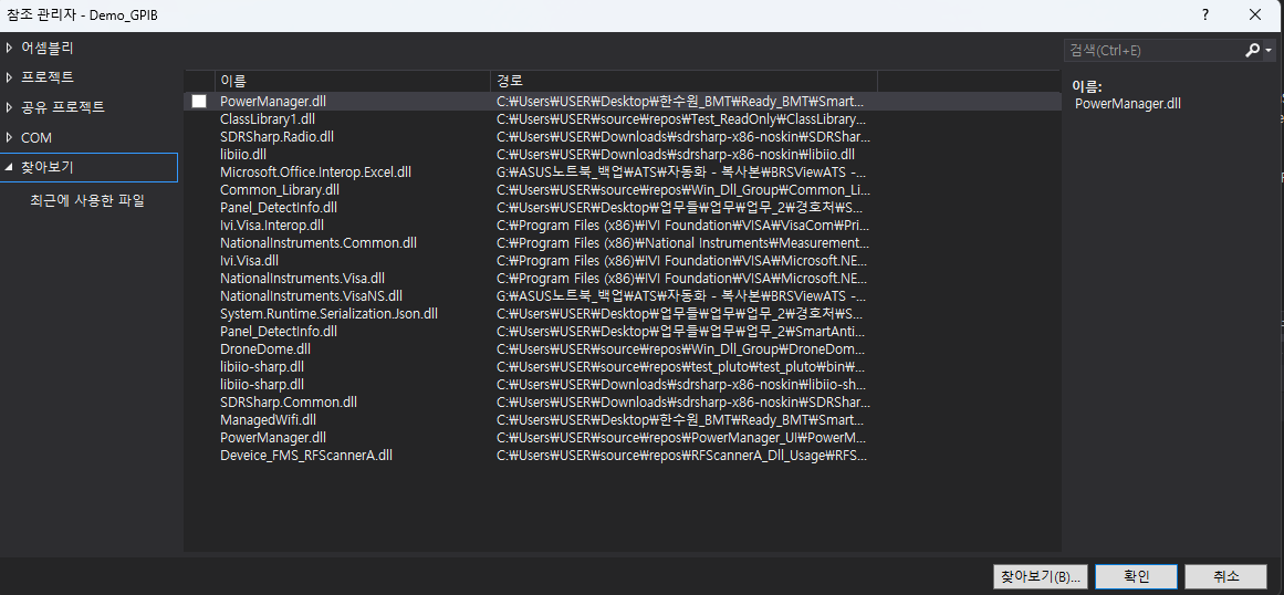 C:\Program Files (x86)\IVI Foundation\VISA\Microsoft.NET\Framework32\v2.0.50727\VISA.NET Shared Components 5.11.0 여기 경로에 Ivi.Visa.dll을 선택합니다.
