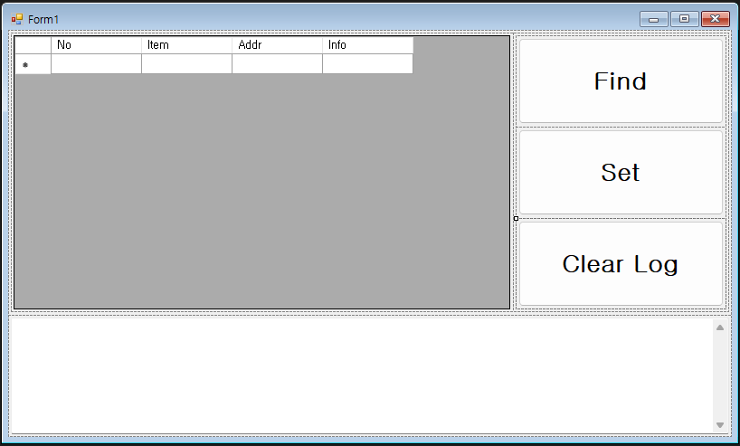 기본적으로 Find 버튼 이후 장비 별칭을 기입해서 등록하는 구조인데 Set 버튼은 검색된 장비가 있을때만 실행을 해야 하므로 버튼은 시작시 비활성화가 되어야 합니다.