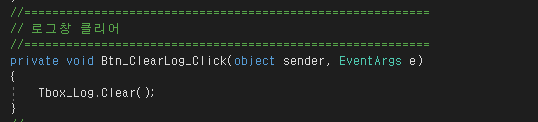 이후 로그창 삭제하는 [ Clear Log ] 버튼에 대한 메서드를 만들겠습니다.